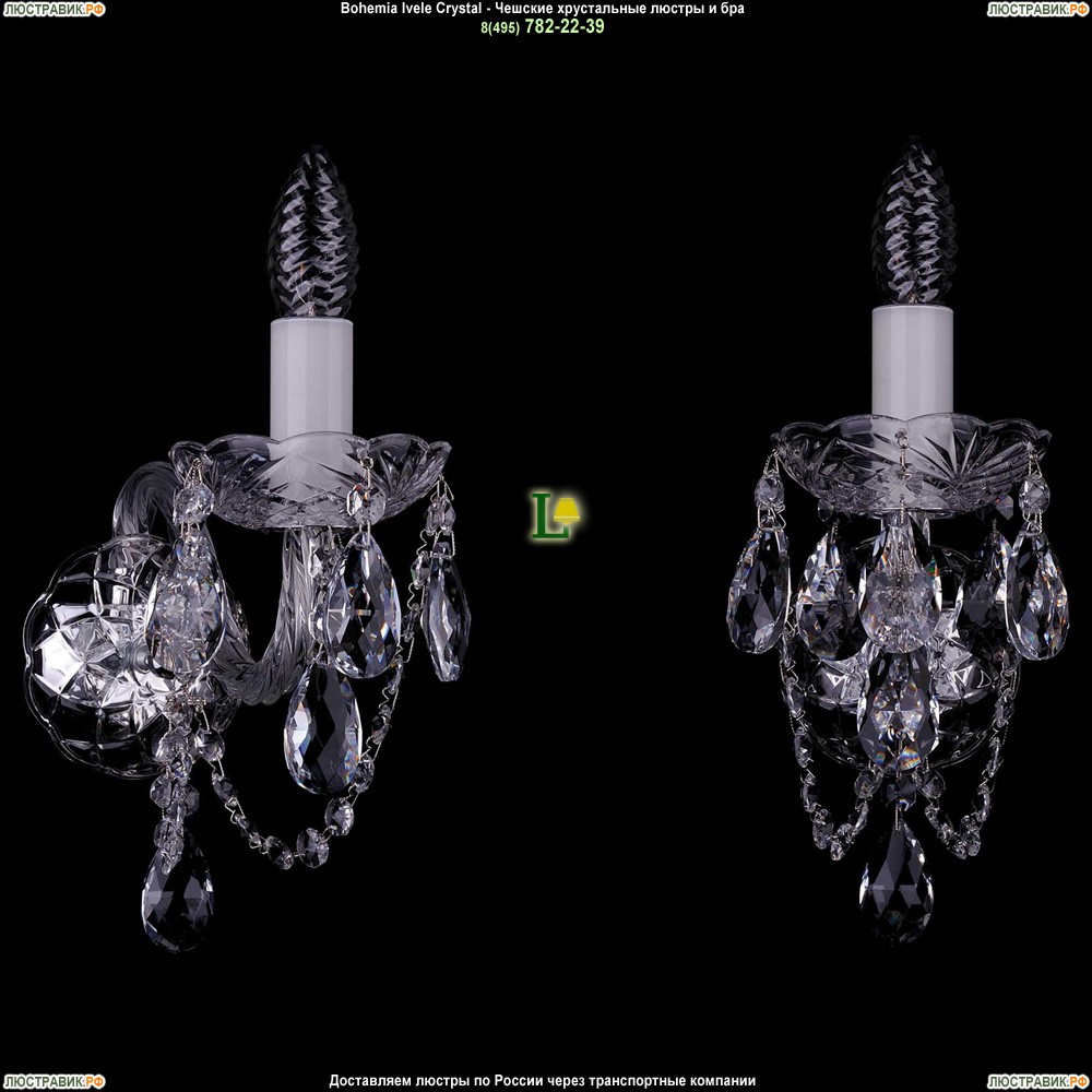 Хрустальное бра Bohemia Ivele Crystal (Богемия), артикул: 1400/1/Big/Ni