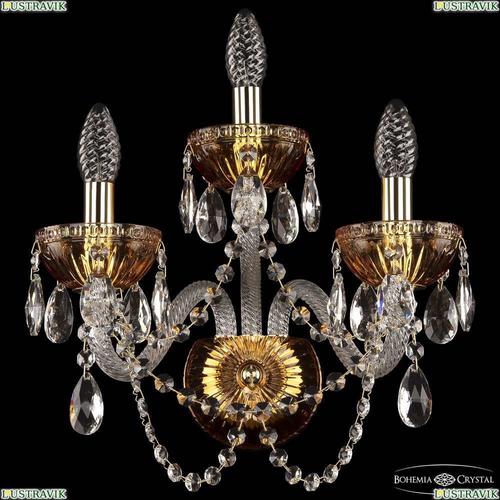 Бра Bohemia Ivele Crystal (Богемия), артикул: 5402B/2+1/165 G Amber/M-1G