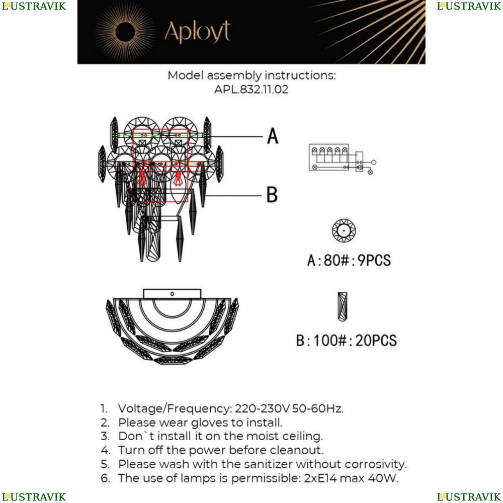 2 x 40Вт, Цоколь: E14 |