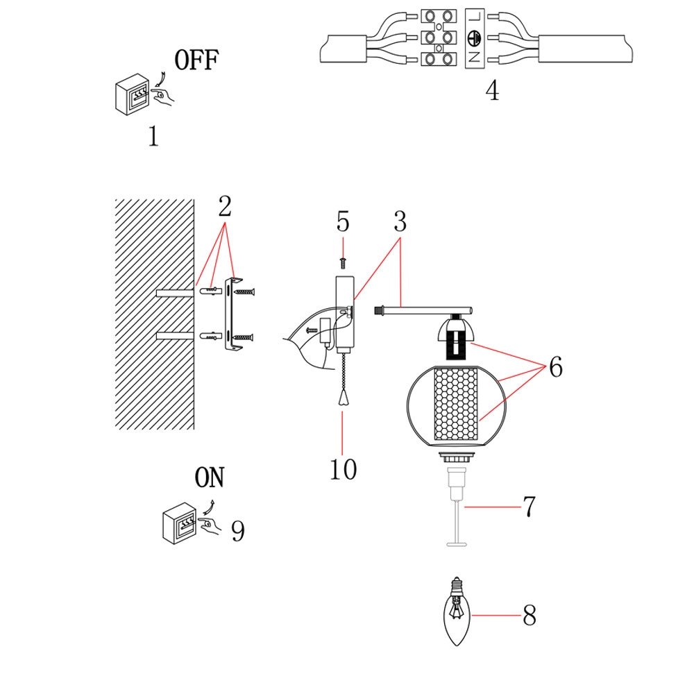 1 x 40Вт, Цоколь: E14 |
