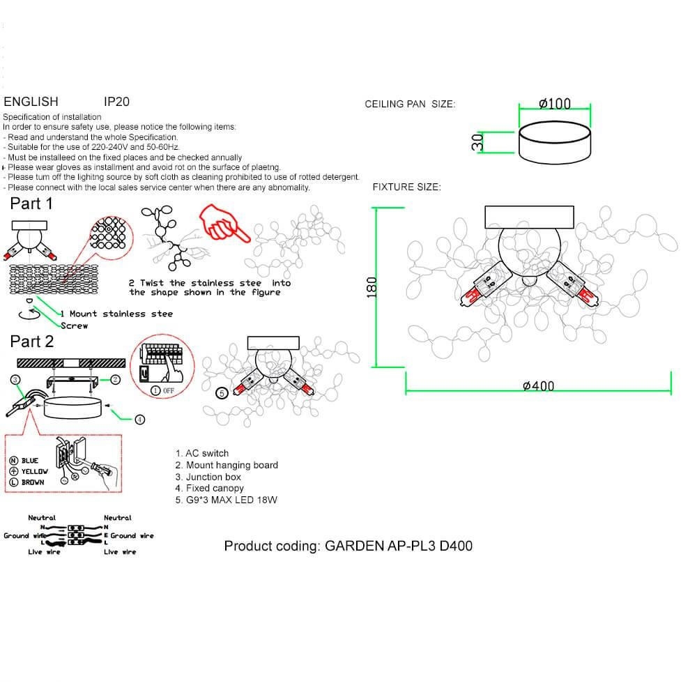 Примечание: Возможность регулировать диаметр светильника от 300 до 400 мм..