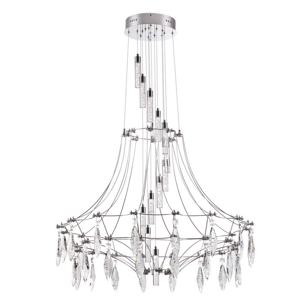 Примечание: Люстра Flamenco выполнена в стиле Fusion, украшена оригинальными хрустальными подвесками и изящной, тонкой арматурой. В ней сочетаются современные светодиодные технологии и классический силуэт. Она станет не только источником света, но и центральным элементом любого интерьера. Открытые светодиодные модули эффектно подсвечивают хрустальные подвески, выполненные по нашему дизайну, стилизованные под природную неограненную форму.Сердце этой люстры Flamenco – это каскад светодиодных трубочек с эффектом пузырьков, создающий уникальный световой эффект. Он словно танец Фламенко: то вспыхивая ярким пламенем, то мягко затухая, создает в комнате атмосферу таинственности. Позвольте этой люстре стать ключевым акцентом вашего дома, привнесите в свою жизнь искру испанского Фламенко, наполните каждый уголок теплом и светом. Светильник может быть в двух цветах арматуры: хроме и золоте. Максимальная высота - 1850мм, диаметр 810мм.