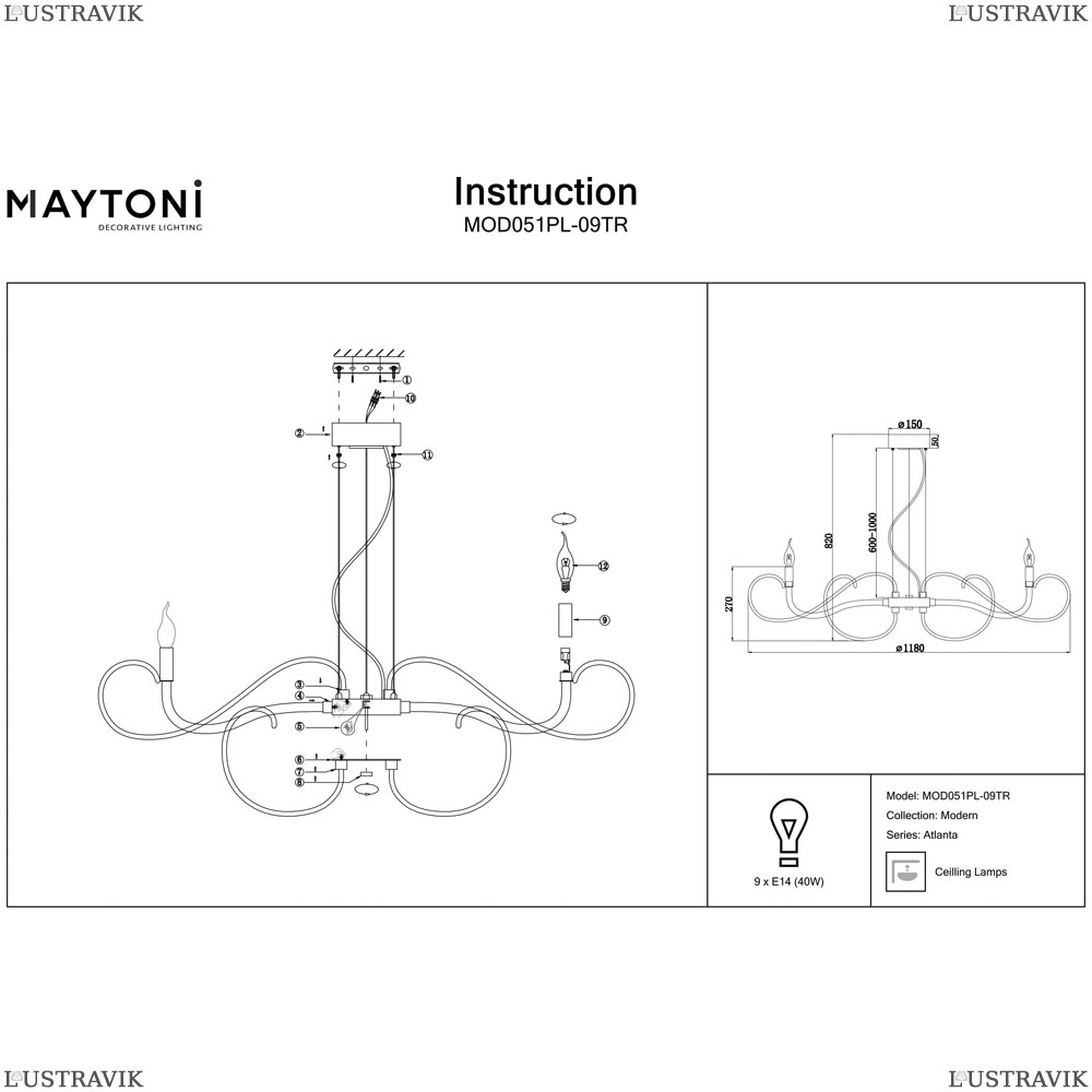 MOD051PL-09TR Подвесная люстра Maytoni, Atlanta