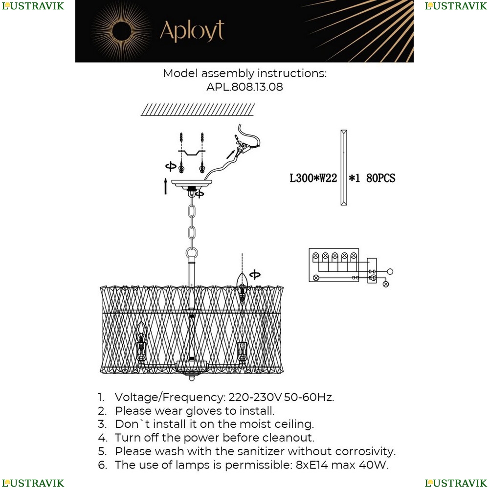 8 x 40Вт, Цоколь: E14 |