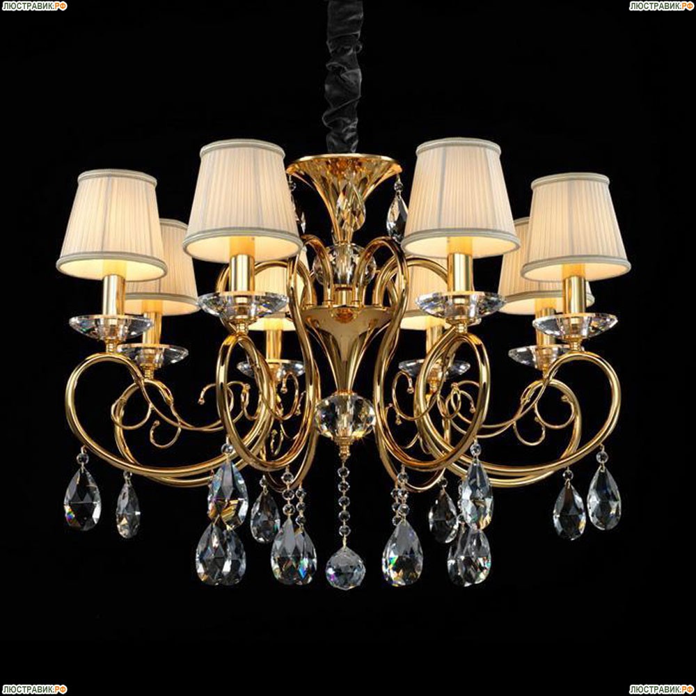 693082 Люстра подвесная хрустальная Osgona Ricerco, 8 плафонов, золото, белый, прозрачный