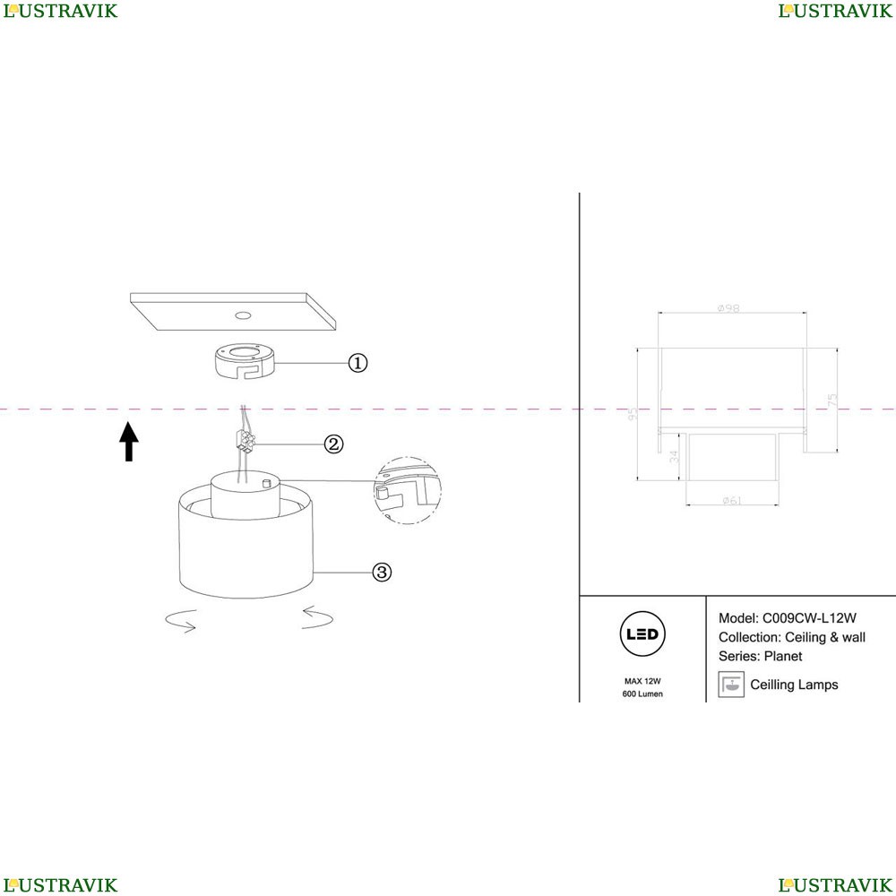 1 x 12Вт, Цоколь: LED |