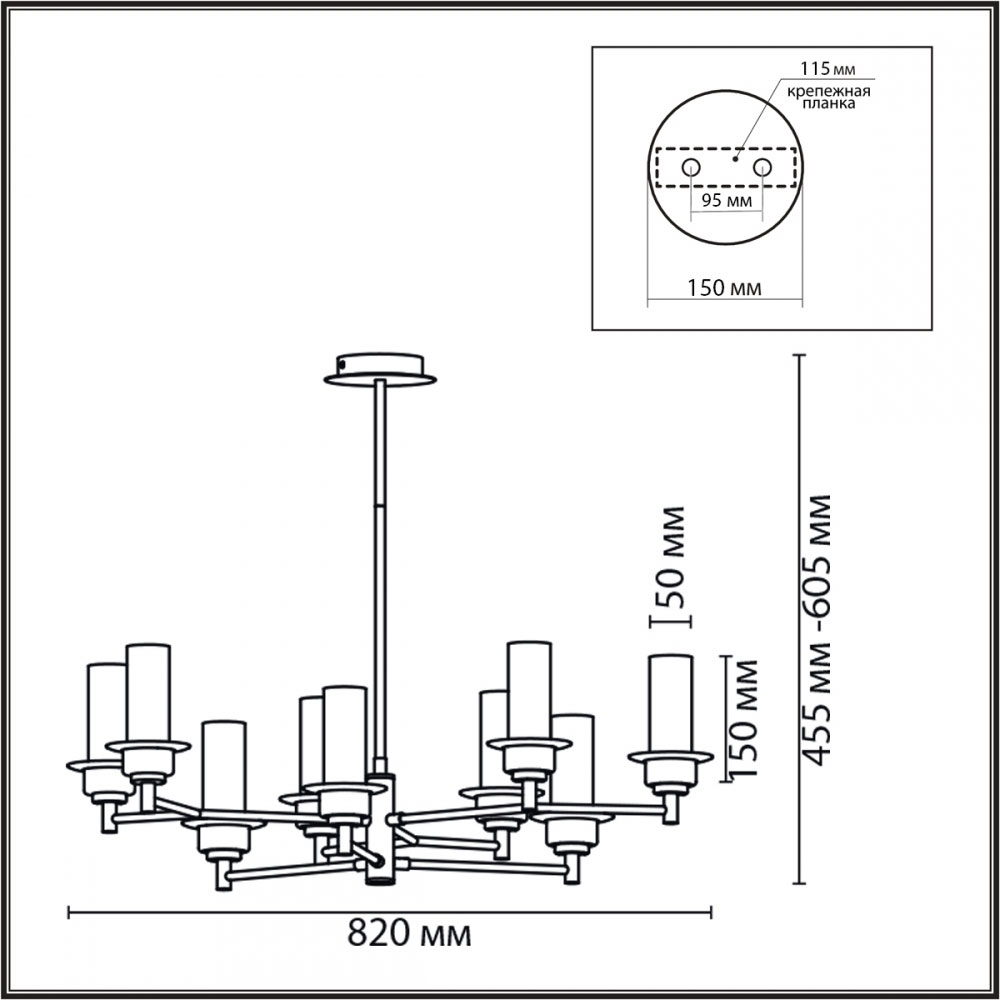 Диаметр люстры: 820 мм;