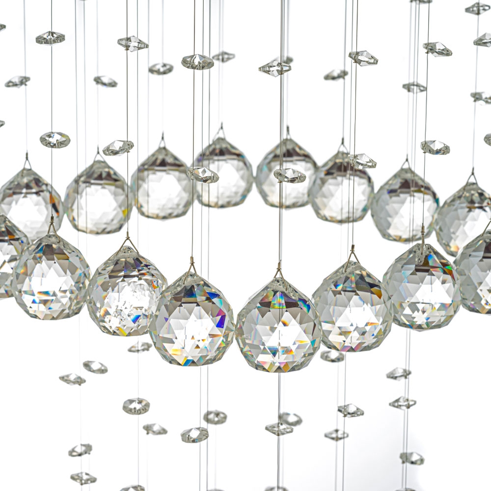 Производитель рекомендует в люстры устанавливать прозрачные светодиодные лампы так как "матовый" свет от энергосберегающих ламп проходя через хрусталь не позволяет раскрыть всю красоту игры света при распадении его на спектр и делает его визуально матовым!