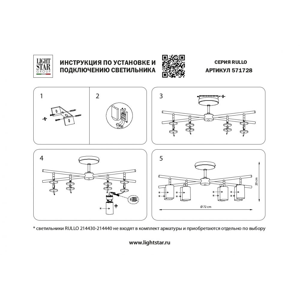 LightstarСветильники укомплектованы информативной инструкцией на русском языке. Обращаем Ваше внимание на то, что все люстры, бра, настольные лампы, торшеры и другие светильники используют каркасную упаковку и тщательно проложены внутри специальными упаковочными материалами для безопасной транспортировки. Все светильники поставляются в разобранном виде, чтобы исключить риски повреждения во время транспортировки. У нас есть команда квалифицированных специалистов, которые помогут собрать, установить и подключить привезенные Вам люстры и светильники.