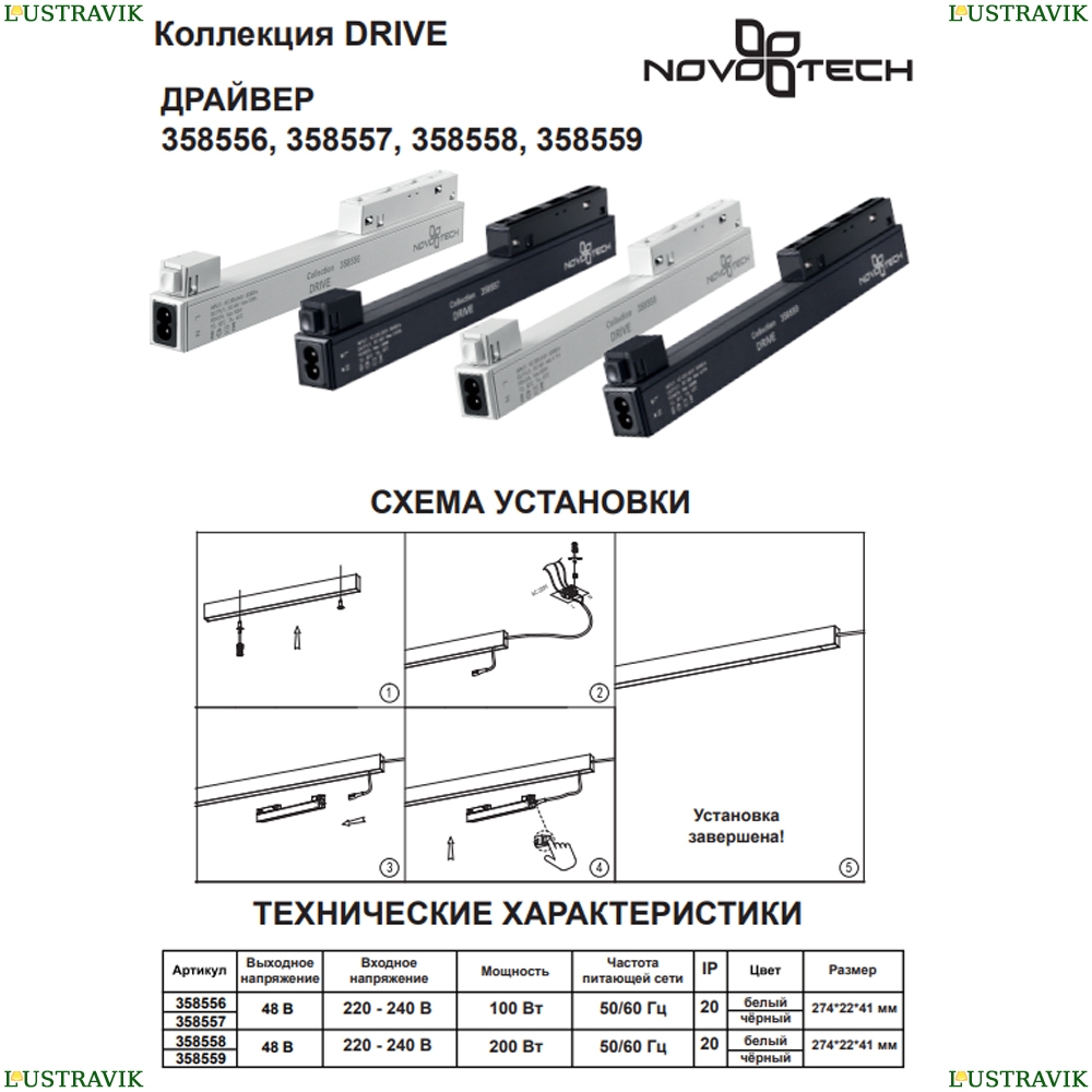 358558 Драйвер для магнитного шинопровода IP20 200W 48V Novotech, FLUM