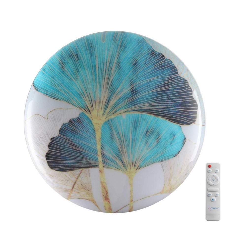 Примечание: Светильник 7747/EL линии FLOREN состоит из металлического основания (базы) и пластикового рассеивателя. Материал рассеивателя - высококачественный пластик марки PMMA 2.0 цвета мульти с глянцевой поверхностью, обеспечивающий светильнику равномерное рассеивание и хорошее светопропускание. Форма плафона: круглая, декорирована орнаментом на плафоне с рисунком цветов и съемным ободом белого цвета. Рисунок на плафоне выполнен методом цифровой печати по технологии прямого нанесения красок на акриловый лист. С целью предотвращения выцветания красок поверх рисунка наносится слой белой краски. После выдувания плафона при высоких температурах красочный рисунок приобретает стойкость и долговечность. Степень защиты IP43 позволяет использовать светильник в определенных зонах влажных помещений. В комплект входит заменяемый LED модуль с линзами, мощностью 70Вт, которая соответствует лампе накаливания 610Вт. А также пульт ДУ, с помощью которого осуществляется плавное изменение цветовой температуры 3000-6000К, изменение яркост.