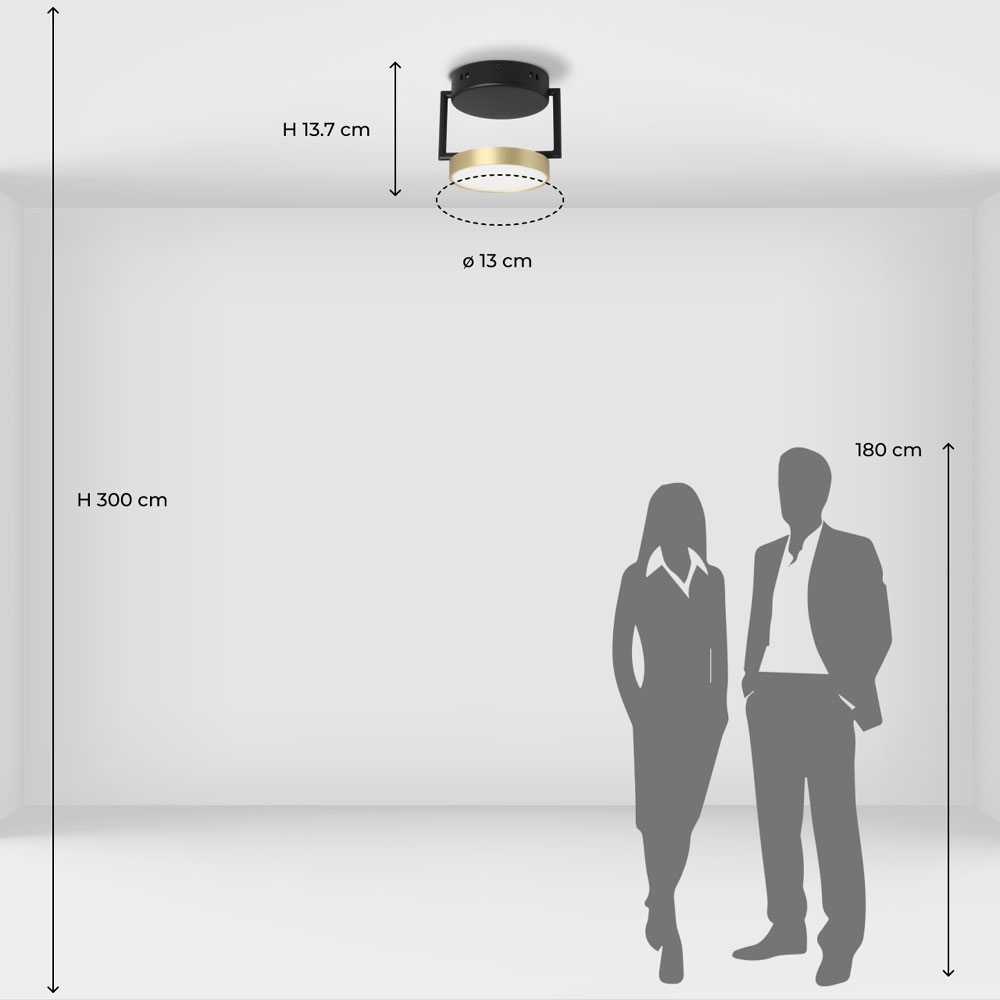 Примечание: Металлическое основание потолочного светильника обработано по технологии порошкового окрашивания в черный цвет. Корпус плафона гальванизирован в цвет золота. Светодиодные источники света закрыты белым матовым акрилом.