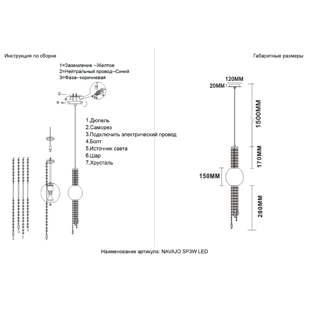 NAVAJO SP3W LED CHROME Светильник подвесной Crystal Lux, Navajo