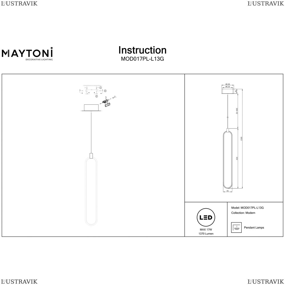 MOD017PL-L13G Подвесной светодиодный светильник Maytoni, Chain -