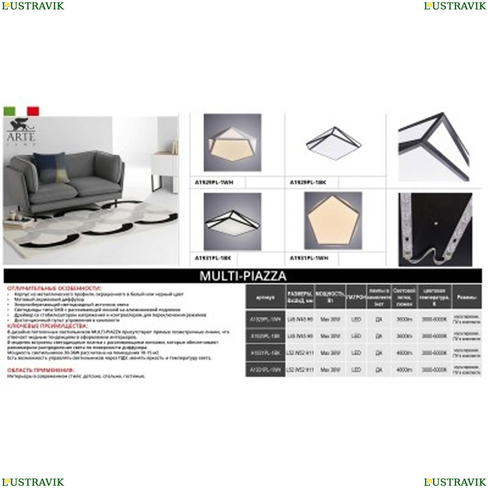 A1931PL-1BK Потолочный светодиодный светильник Arte Lamp (Арте ламп), Multi-Piazza -
