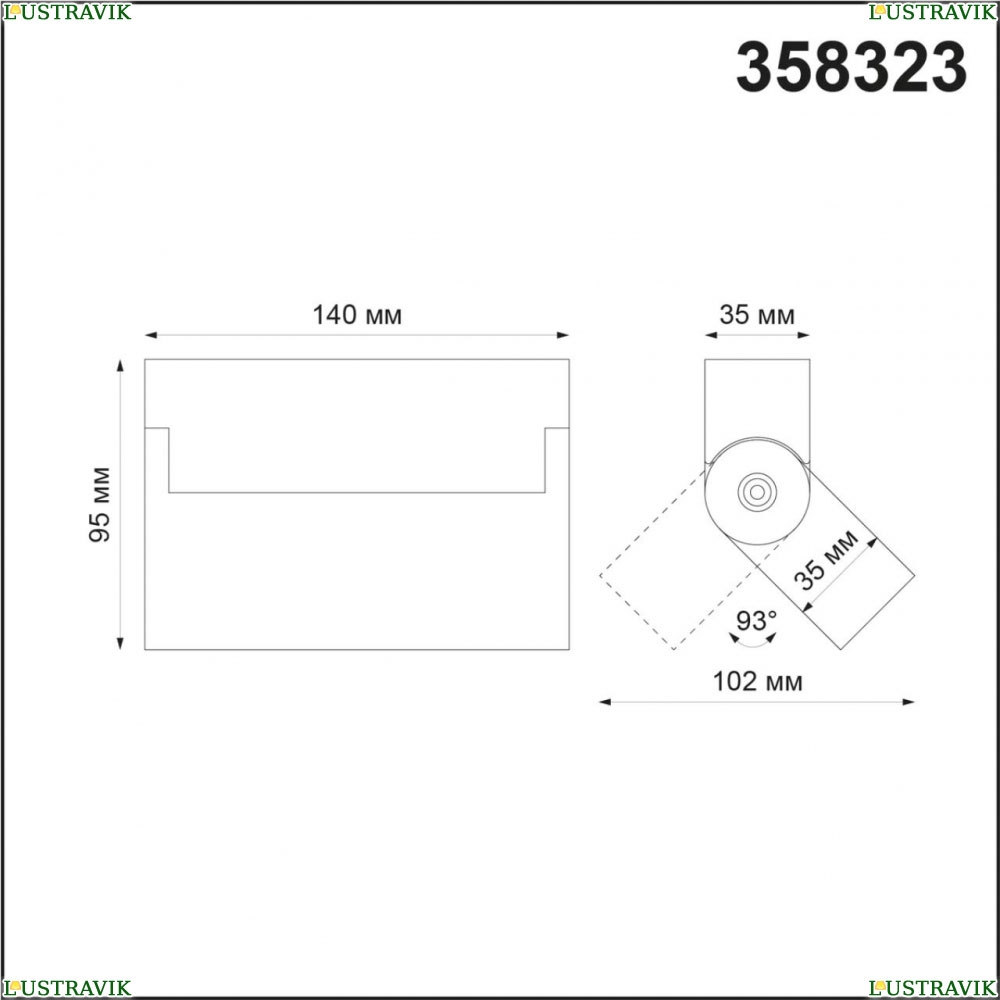 Площадь освещения, м2: