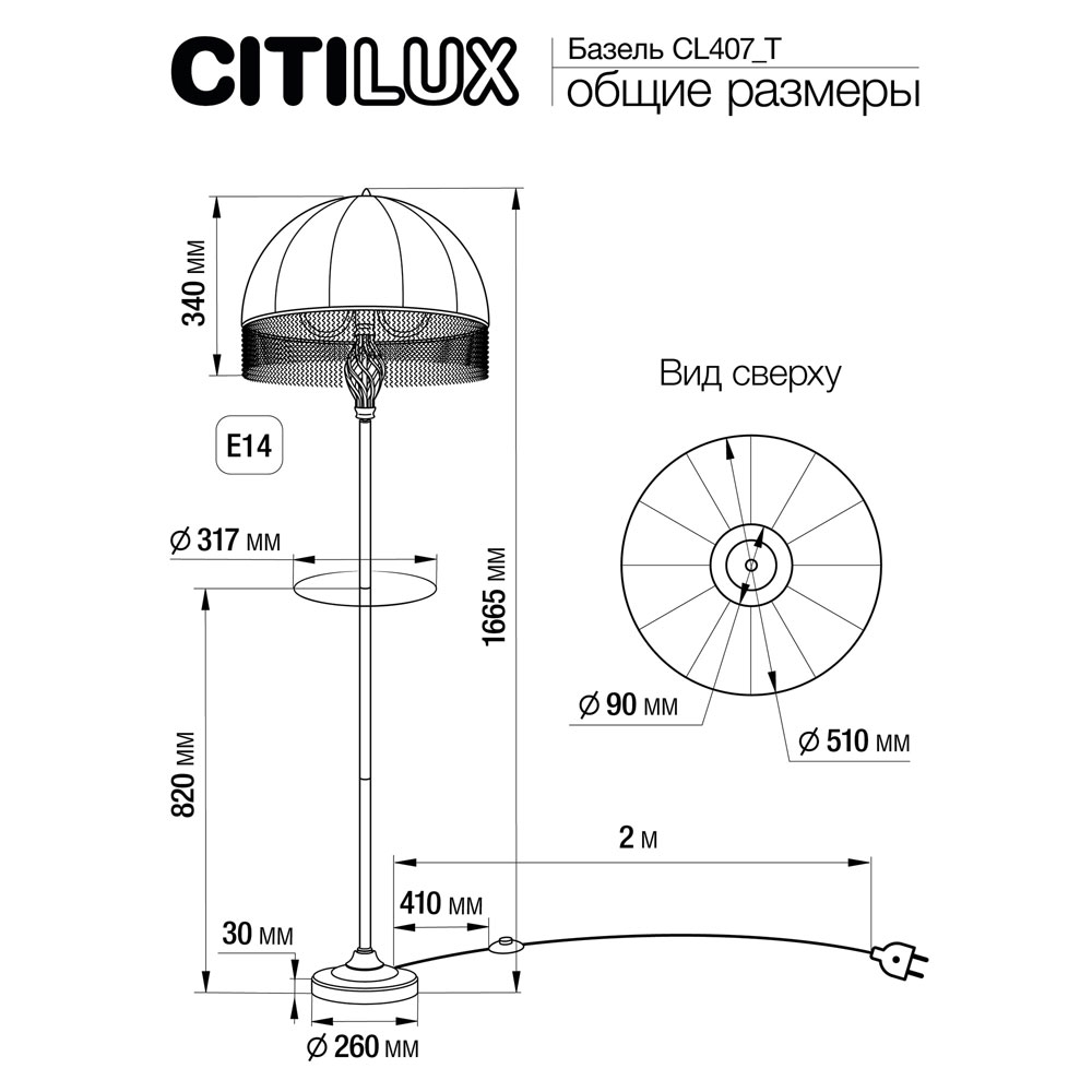 Citilux Базель CL407933T Торшер бронза со столиком и красным абажуром -