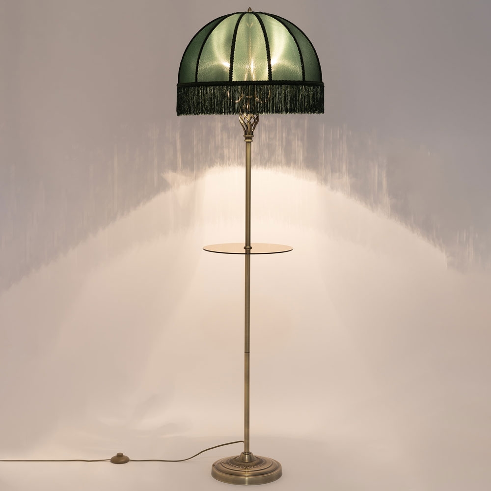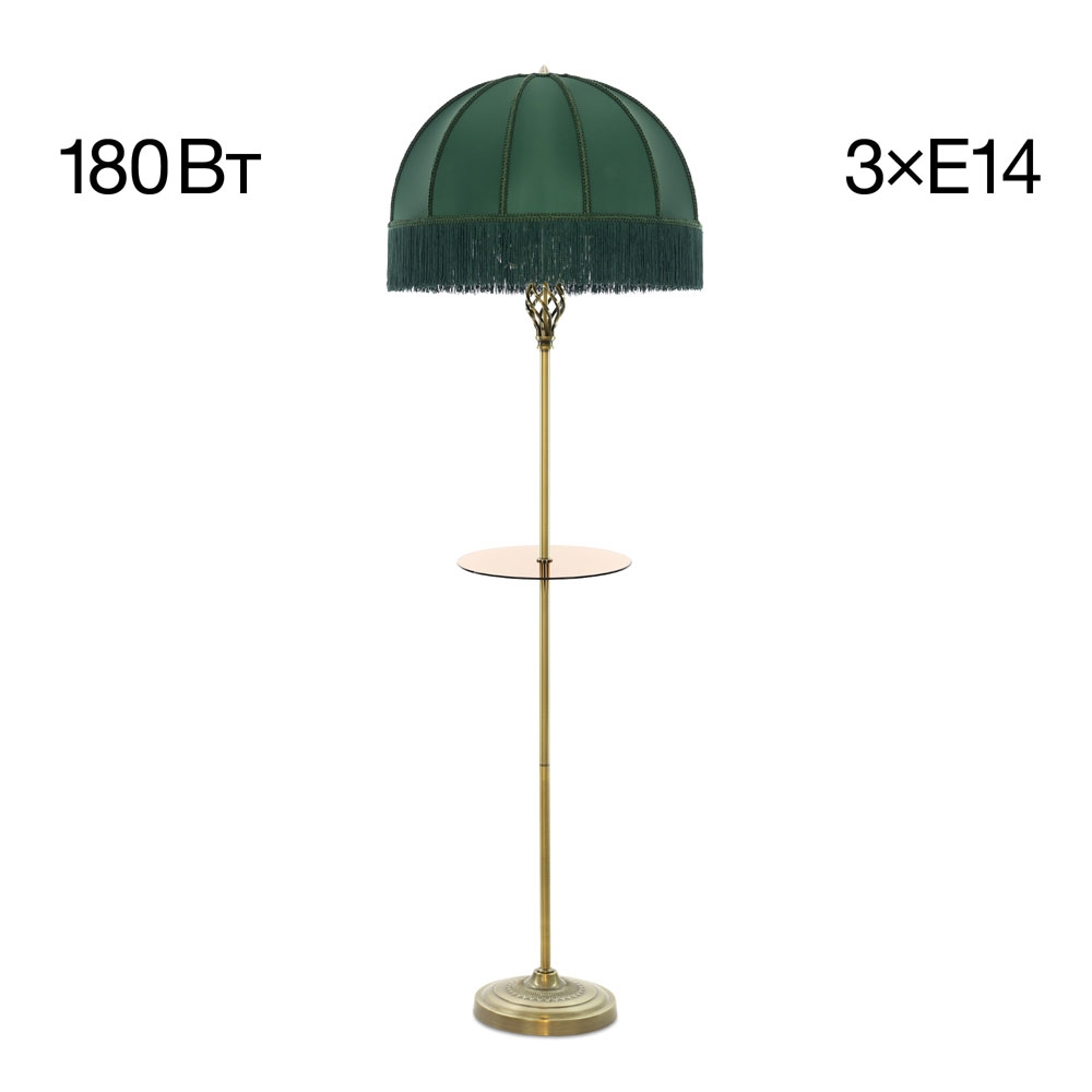 Citilux Базель CL407932T Торшер бронза со столиком и зелёным абажуром -