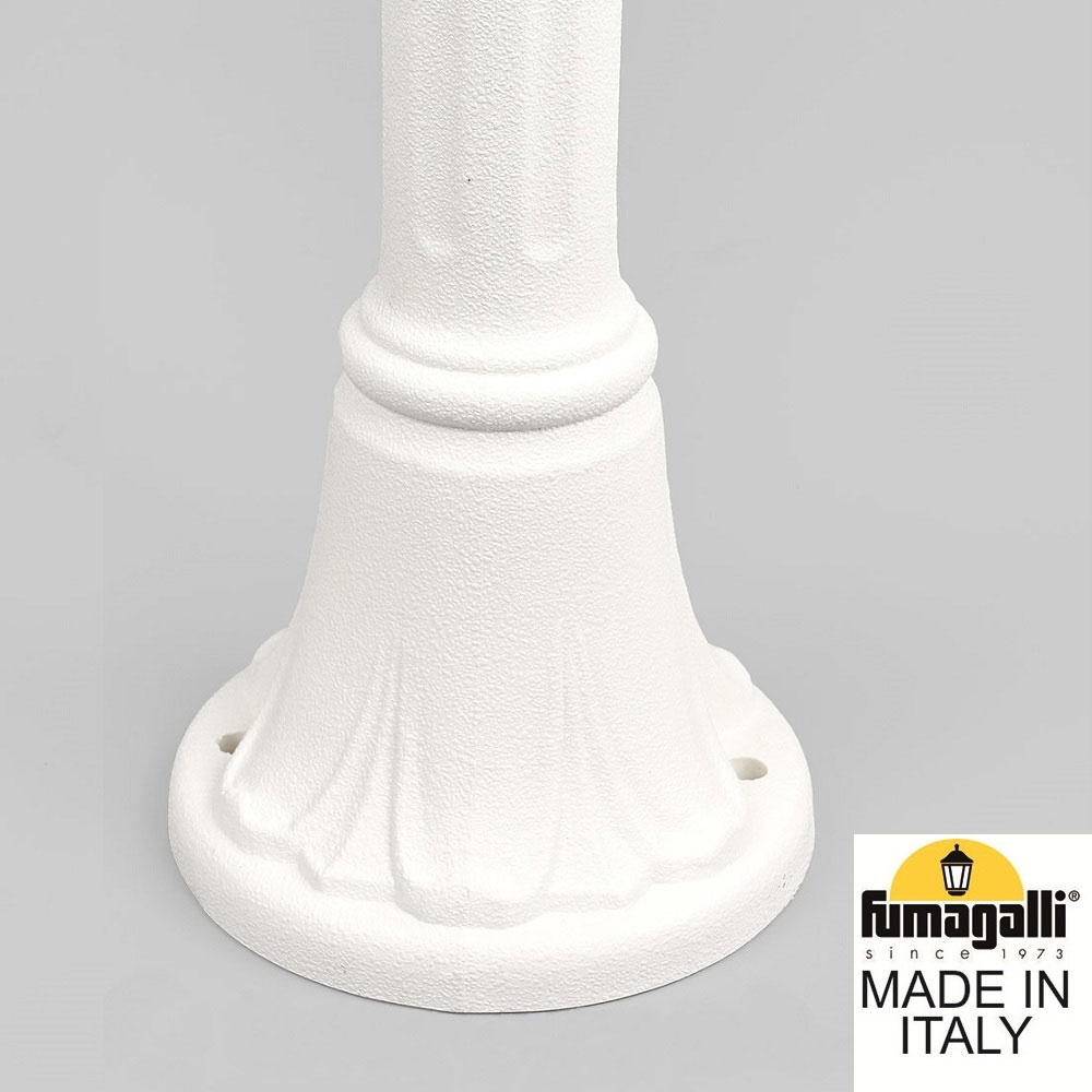 Садовый светильник-столбик FUMAGALLI серии ANNA, модель ANNA/MIZAR.R. Столбик освещения MIZAR.R и светильник ANNA. Используются для архитектурного и ландшафтного освещения в стиле "классика". Место установки столбиков освещения - парковые дорожки, тротуары, газоны в парках и скверах, а так же ландшафтные и архитектурные объекты. Изготовлены в Италии, по уникальным технологиям "FUMAGALLI" из современного композитного полимера RESIN. Этот материал в 5 раз прочнее металла, не ржавеет, не окисляется, не выгорает на солнце, его не нужно красить. Все светильники пыле-влаго защищены по стандарту IP44 (защита от попадания твердых частиц более 1мм., защита от капель или брызг, падающих под любым углом). Рассеиватель выполнен из антивандального, не мутнеющего и не горючего PMMA (ПолиМетилМетаАкрилат). Срок службы светильника - не менее 20 лет. Температура использования от -60 до +90. В серии ANNA есть фонари в настенном (BISSO/ANNA, PORPORA/ANNA) подвесном (SICHEM/ANNA, SICHEM/ANNA 3L) и наземном исполнении (IAFAET.R/ANNA, ALOE.R/ANNA, ARTU/ANNA, GIGI/ANNA, RICU/ANNA, RICU/ISSO/ANNA 1L, RICU/ISSO/ANNA 2L, RICU/ISSO/ANNA 3L) со столбами разной высоты, с разным количеством и конфигурацией голов. Консоли настенных фонарей и кронштейны светильников на столбах освщения могут устанавливаться вверх/вниз. Столбы выше 150 см имеют в основе мощную стальную трубу с двойной оцинковкой. При заказе требуется выбрать цвет корпуса, цвет плафона и тип патрона (Е-27 или LED GX-53). Возможен светодиодный вариант. По стилю и дизайну серия уличных светильников ANNA похожа на светильники среднего размера серии RUT и на светильники большого размера серии NOEMI. По размеру ANNA относится к малым светильникам как серия SABA и GLOBE 250.