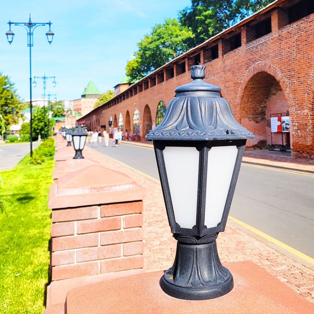 Ландшафтные фонари FUMAGALLI серии ANNA, модель ANNA/MIKROILOT. Столбик MIKROILOT с уличным фонарем ANNA. Используются для архитектурного и ландшафтного освещения в стиле "классика". Место установки уличных светильников - перила лестниц, столбы заборов, колонны, тумбы, подпорные стенки, стилобаты, ландшафтные композиции в парках и скверах. В общем, там, где светильник находится на каком-то возвышении, тумбе или подиуме. Изготовлены в Италии, по уникальным технологиям "FUMAGALLI" из современного композитного полимера RESIN. Этот материал в 5 раз прочнее металла, не ржавеет, не окисляется, не выгорает на солнце, его не нужно красить. Все светильники пыле-влаго защищены по стандарту IP44 (защита от попадания твердых частиц более 1мм., защита от капель или брызг, падающих под любым углом). Рассеиватель выполнен из антивандального, не мутнеющего и не горючего PMMA (ПолиМетилМетаАкрилат). Срок службы светильника - не менее 20 лет. Температура использования от -60 до +90. В серии ANNA есть фонари в настенном (BISSO/ANNA, PORPORA/ANNA) подвесном (SICHEM/ANNA, SICHEM/ANNA 3L) и наземном исполнении (IAFAET.R/ANNA, ALOE.R/ANNA, ARTU/ANNA, GIGI/ANNA, RICU/ANNA, RICU/ISSO/ANNA 1L, RICU/ISSO/ANNA 2L, RICU/ISSO/ANNA 3L) со столбами разной высоты, с разным количеством и конфигурацией голов. Консоли настенных фонарей и кронштейны светильников на столбах освщения могут устанавливаться вверх/вниз. Столбы выше 150 см имеют в основе мощную стальную трубу с двойной оцинковкой. При заказе требуется выбрать цвет корпуса, цвет плафона и тип патрона (Е-27 или LED GX-53). Возможен светодиодный вариант. По стилю и дизайну серия уличных светильников ANNA похожа на светильники среднего размера серии RUT и на светильники большого размера серии NOEMI. По размеру ANNA относится к малым светильникам как серия SABA и GLOBE 250.