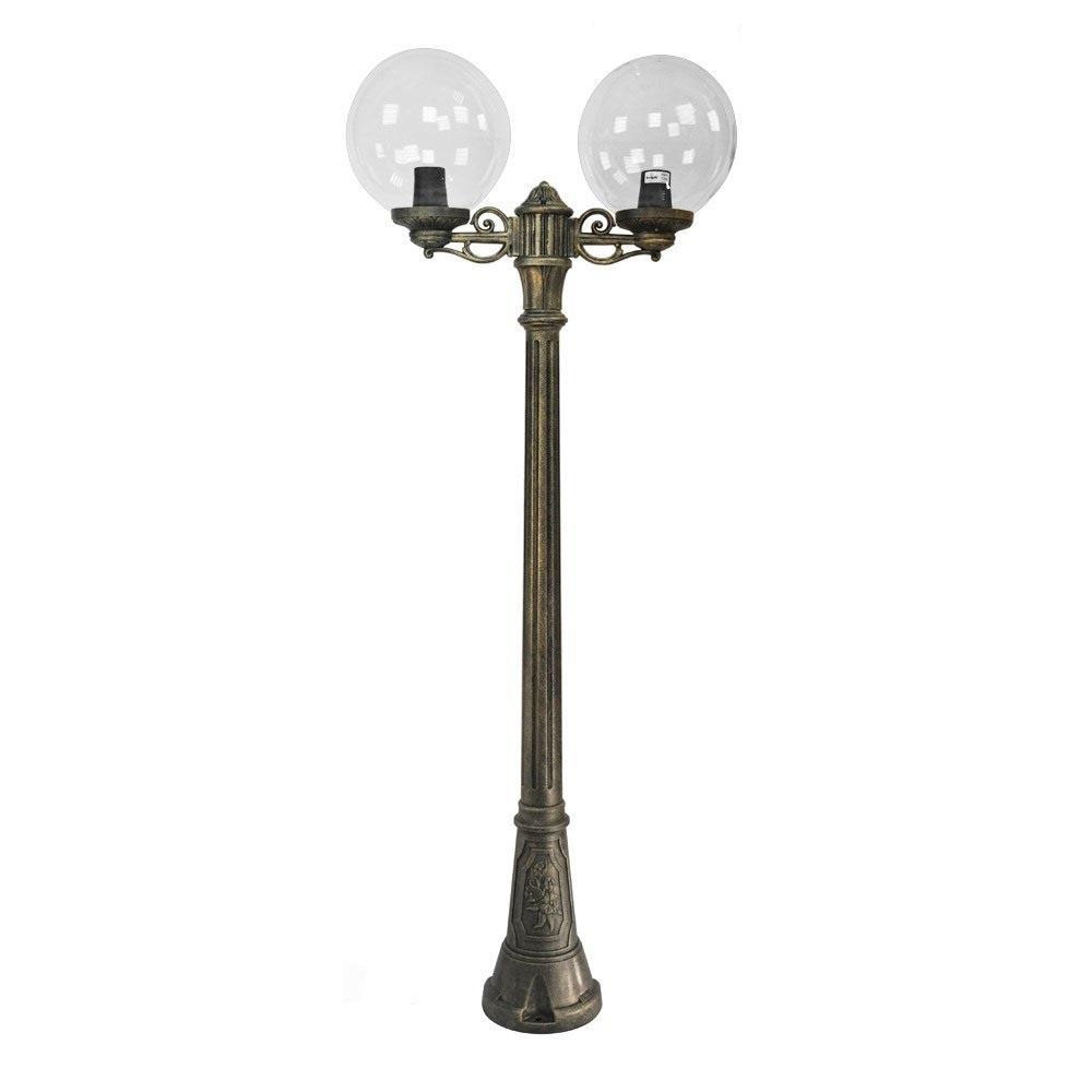 Садово-парковый фонарь FUMAGALLI серии GLOBE 300, модель ARTU/BISSO/GLOBE 300 2L. Парковый торшер, столб ARTU с двумя уличными фонарями GLOBE 300 на консолях BISSO малого размера. Используются для архитектурного и ландшафтного освещения в стиле "классика". Место установки столбиков освещения - парковые дорожки, тротуары, газоны в парках и скверах, а так же ландшафтные и архитектурные объекты. Изготовлены в Италии, по уникальным технологиям "FUMAGALLI" из современного композитного полимера RESIN. Этот материал в 5 раз прочнее металла, не ржавеет, не окисляется, не выгорает на солнце, его не нужно красить. Все светильники пыле-влаго защищены по стандарту IP65 (Пыленепроницаемые, защита от водяных струй с любого направления). В комплекте идут крепежи и закладные элементы. Рассеиватель выполнен из антивандального, не мутнеющего и не горючего PMMA (ПолиМетилМетаАкрилат). Срок службы светильника - не менее 20 лет. Температура использования от -60 до +90. В серии GLOBE 300 есть фонари в настенном (BISSO/GLOBE 300, OFIR/GLOBE 300, MIRRA/GLOBE 300, PORPORA/GLOBE 300) подвесном (SICHEM/GLOBE 300) и наземном исполнении (IAFAET.R/GLOBE 300, MIZAR.R/GLOBE 300, ARTU/GLOBE 300, MIZAR.R/GLOBE 300, GIGI/GLOBE 300, RICU/ISSO/GLOBE 3002L, NEBO/GLOBE 300, NEBO OFIR/GLOBE 300 2L, NEBO OFIR/GLOBE 300 3L, TABOR ADAM/GLOBE 300 1L, TABOR ADAM/GLOBE 300 2L, TABOR OFIR/GLOBE 300 3L) со столбами разной высоты, с разным количеством и конфигурацией голов. Консоли настенных фонарей и кронштейны светильников на столбах освщения могут устанавливаться вверх/вниз. Столбы выше 150 см имеют в основе мощную стальную трубу с двойной оцинковкой. При заказе требуется выбрать цвет корпуса, цвет плафона и тип патрона. По стилю и дизайну серия уличных светильников GLOBE 300 похожа на светильники большого размера GLOBE 400 и на светильники малого размера GLOBE 250.
